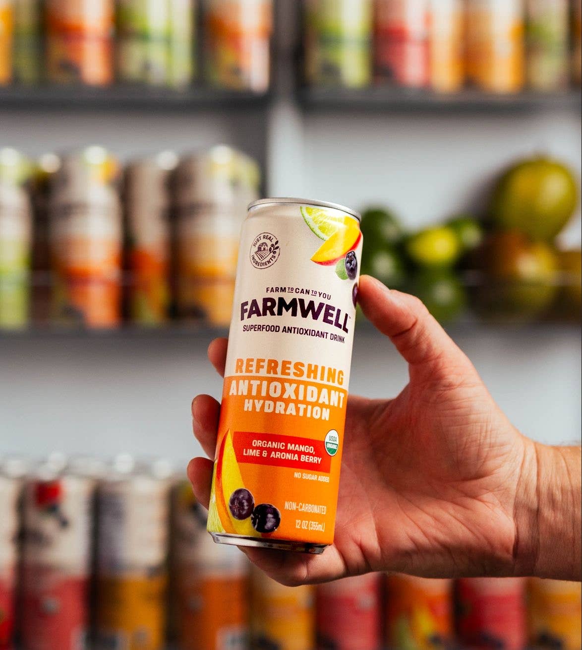 Smooth tropical mango with just the right amount of zesty lime kick. Sweet-but-not-too-sweet, it’s sunshine in a can—refreshing, light, and full of feel-good flavor and the antioxidant power of Aronia. Product Highlights: Made with real mango, lime, and Aronia berry Powered by Aronia—one of the highest natural sources of antioxidants Organic, caffeine-free, and naturally low in sugar No preservatives, no additives, and no artificial flavors From a Regenerative Organic Certified® family farm Shelf-stable and perfect for year-round refreshment Every sip starts on our family’s Regenerative Organic Certified® farm, where we grow Aronia berries—one of the highest natural sources of antioxidants—without shortcuts or chemicals. We blend them with smooth, sun-ripened mango and a squeeze of bright lime for a clean, tropical taste that feels as good as it tastes. No added sugars, no preservatives, and no caffeine—just simple, real ingredients crafted for pure, natural refreshment. From the field to the can.