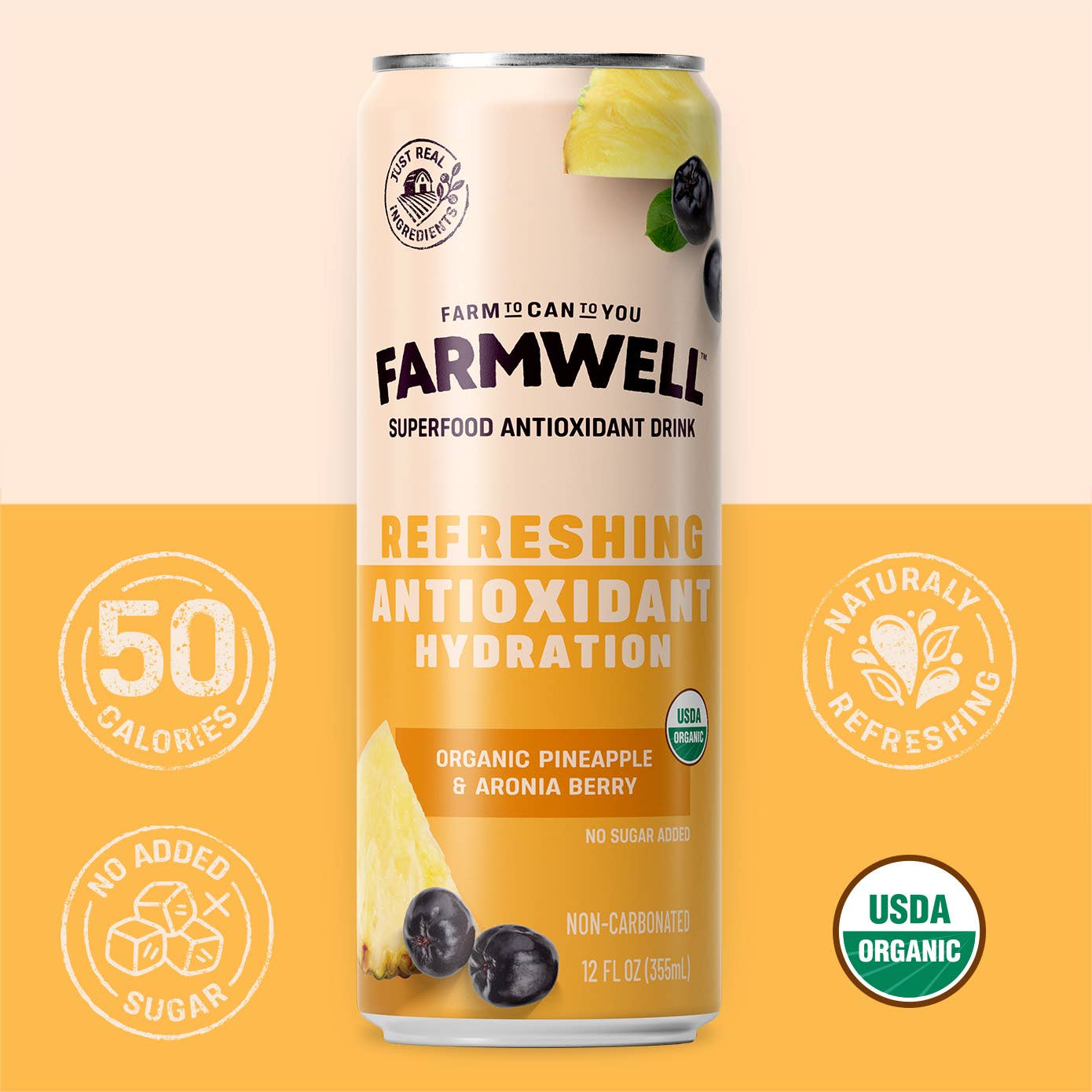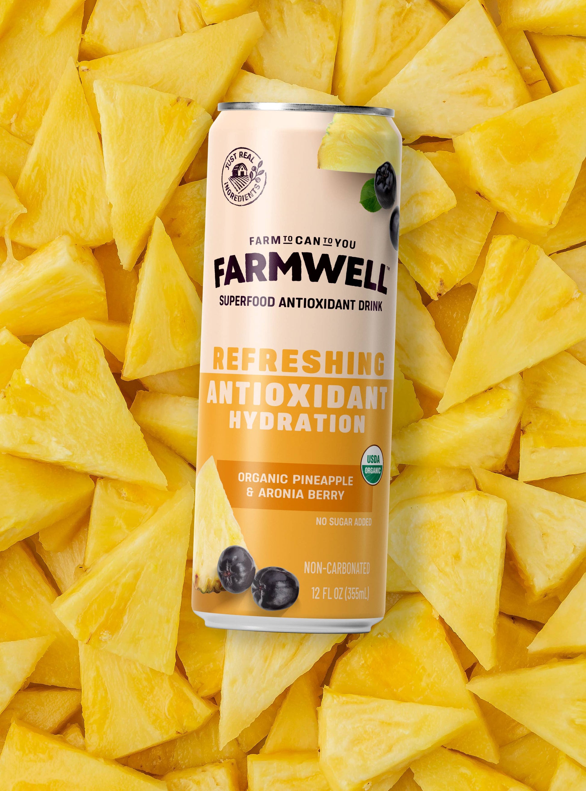 Every sip starts on our family’s Regenerative Organic Certified® farm, where we grow Aronia berries—one of the highest natural sources of antioxidants—without shortcuts or chemicals. Blended with organic pineapple for a clean, tropical flavor, this drink delivers light, natural hydration with nothing extra—no added sugars, preservatives, or caffeine. Just real ingredients grown with care and crafted for pure refreshment.